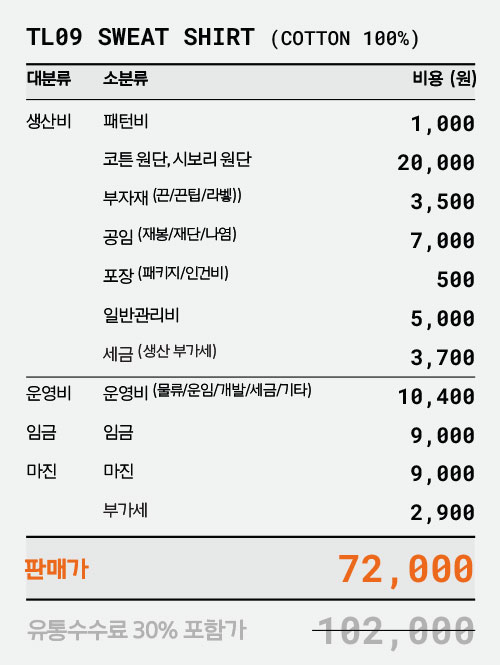 마더그라운드가 제작한 모든 제품은 비용을 공개하고 있습니다.