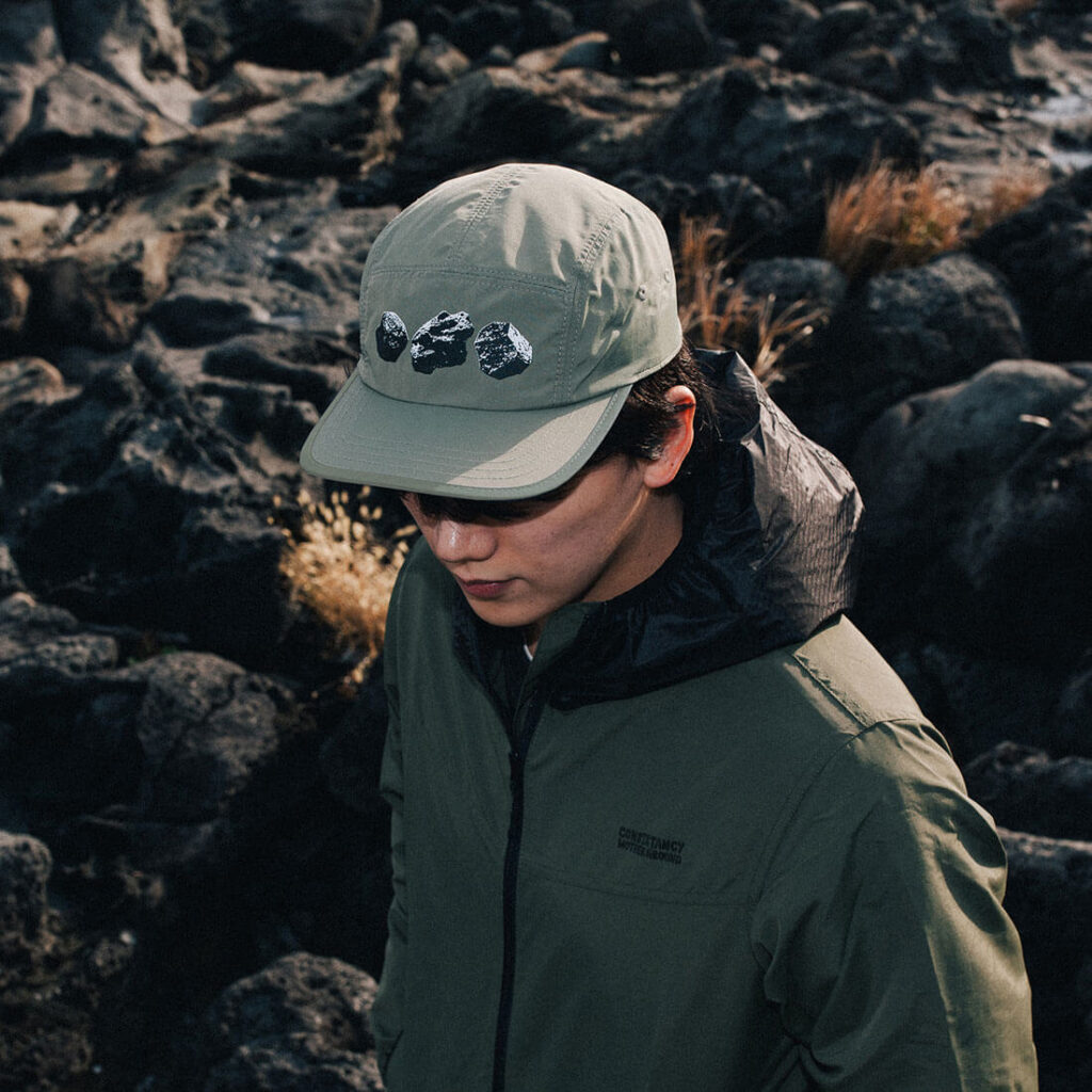 하드챙과 리사이클 나일론으로 제작된 캠프캡입니다. 가볍고 통기성이 좋습니다. 기본적인 생활방수가 되는 원단입니다.