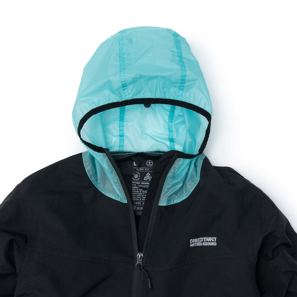 도톰한 윈드브레이커입니다. 모자부분에는 패러글라이더 리사이클 원단을 활용하였습니다.