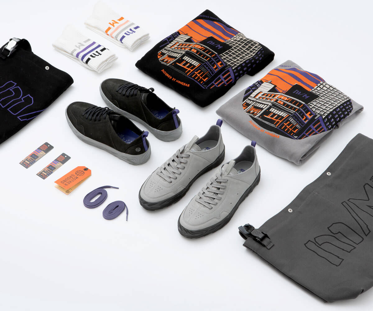 홍대에서 모티프를 얻은 홍대에디션 ‘m/M’ 입니다. m은 musinsa terrace를 M은 MOTHER GROUND를 의미합니다. m/M 컬렉션은 홍대를 한눈에 내려볼 수 있는 ‘무신사 테라스’와 함께 만든 협업 컬렉션입니다.