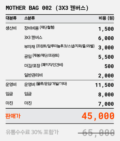 바닥은 두겹의 원단을 X 스티치로 고정하여 내구성을 높였습니다.