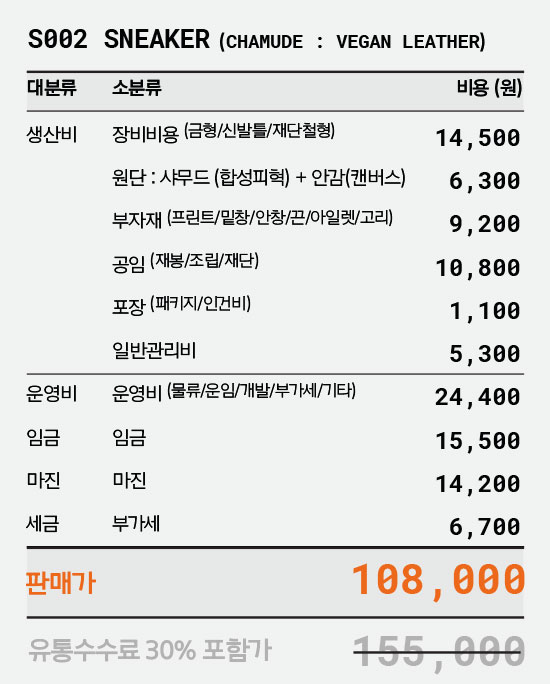 Sneakers Cost Info 가격상세 :