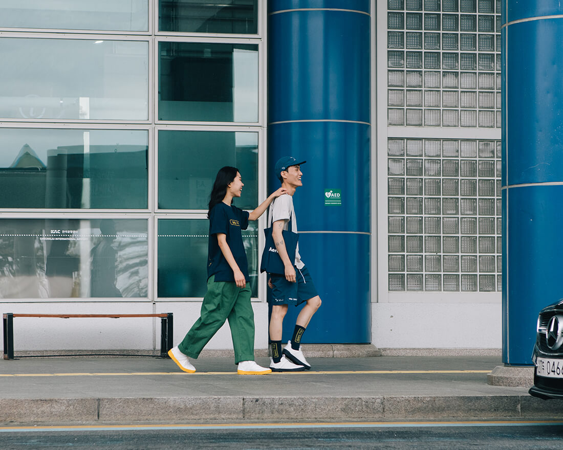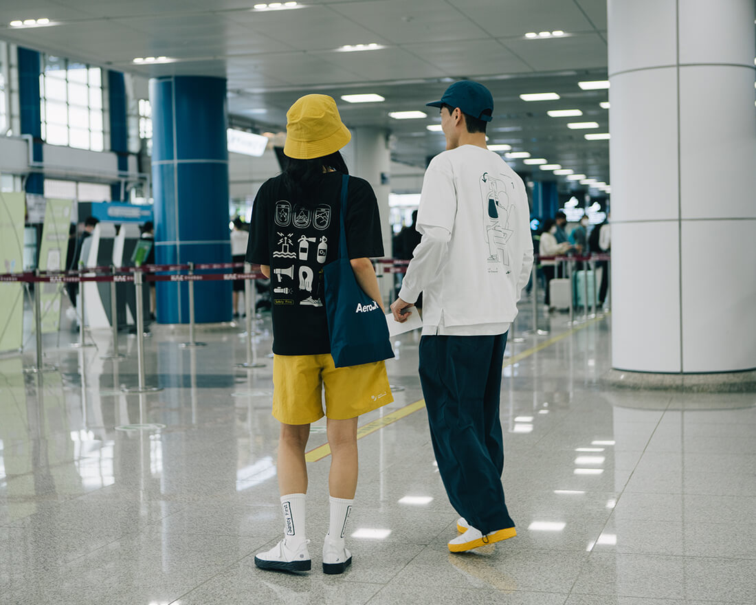 에어로케이의 대표 컬러가 적용된 두 가지 모델은 모두 에어로케이 운항과 객실 승무원의 공식 유니폼화로 활용되며, 이번 협업의 취지를 담은 다양한 굿즈를 마더그라운드 공식 사이트에서 만나보세요.