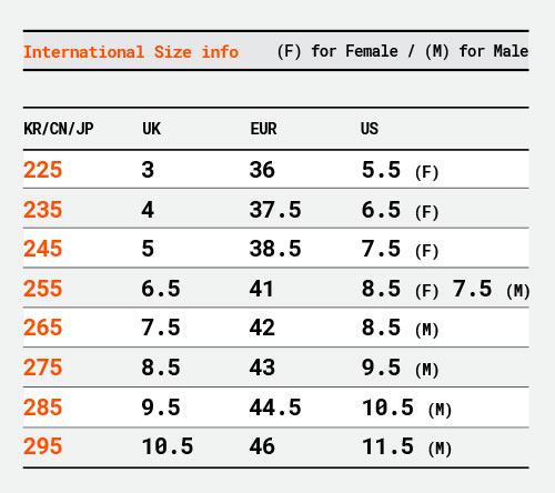 3. 225, 235, 245…295 이렇게 끝자리가 5인 사이즈로만 발매됩니다.