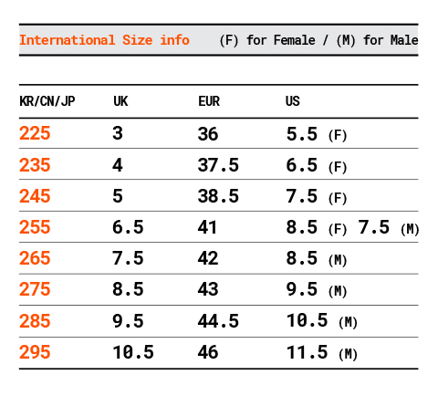* 225, 235, 245…295 이렇게 끝자리가 ‘5’인 사이즈로만 8개 사이즈가발매됩니다.