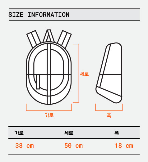 2019년도 버전 Large 사이즈와 Small 사이즈의 중간 사이즈로 제작하였습니다. 맥북기준 16인치 랩탑까지 수납가능합니다.