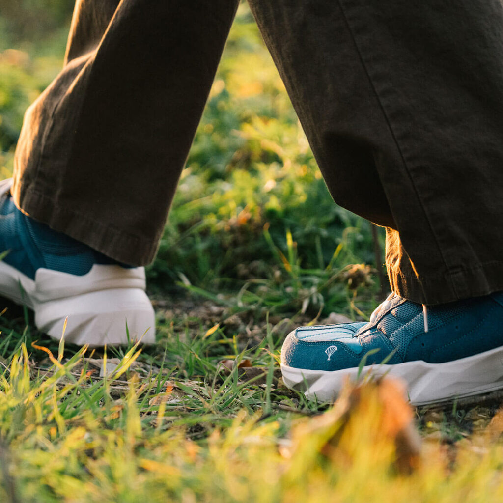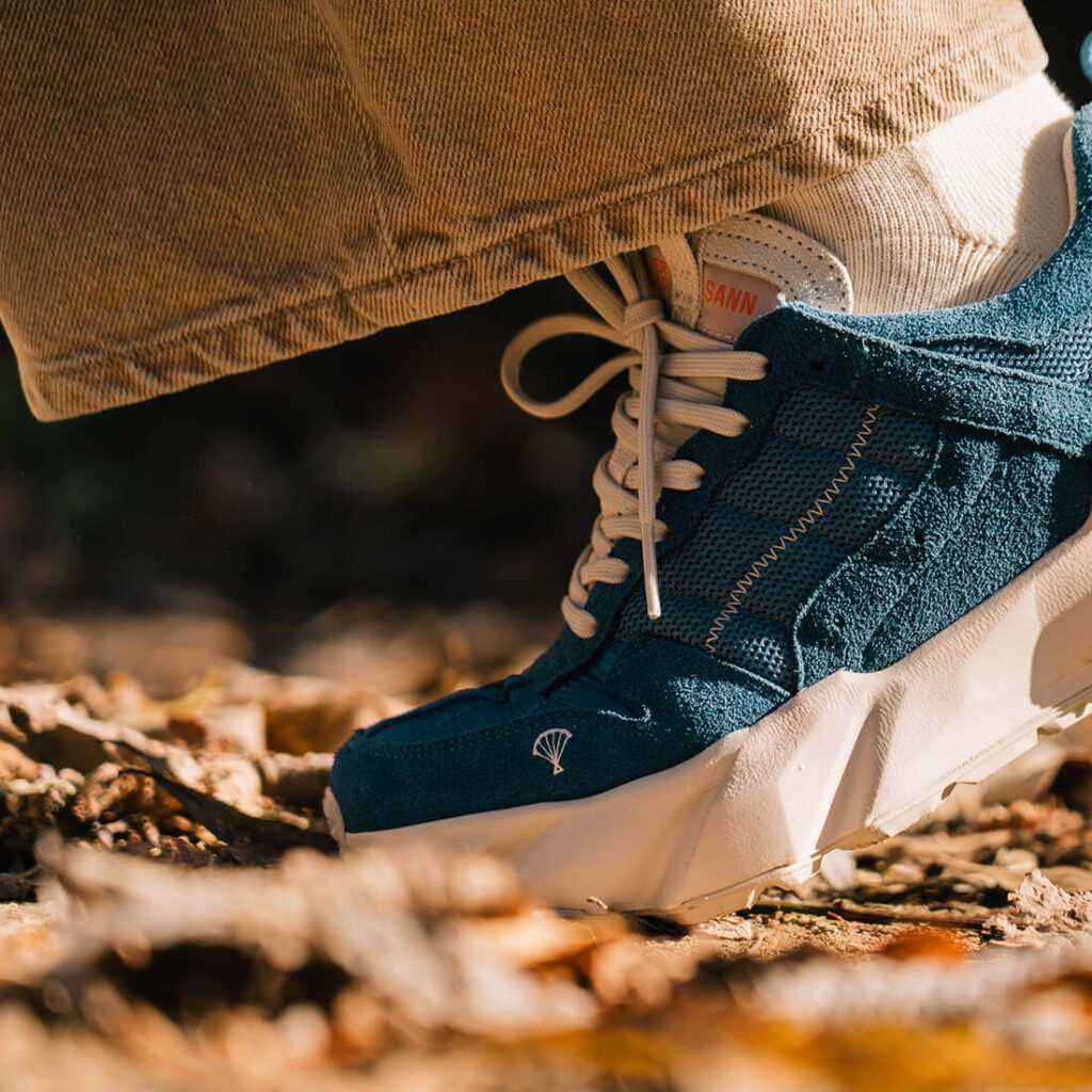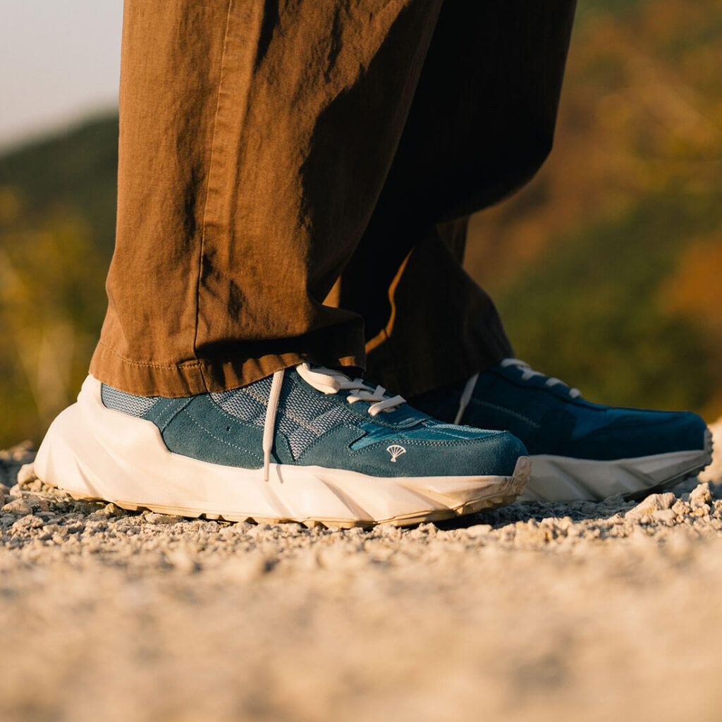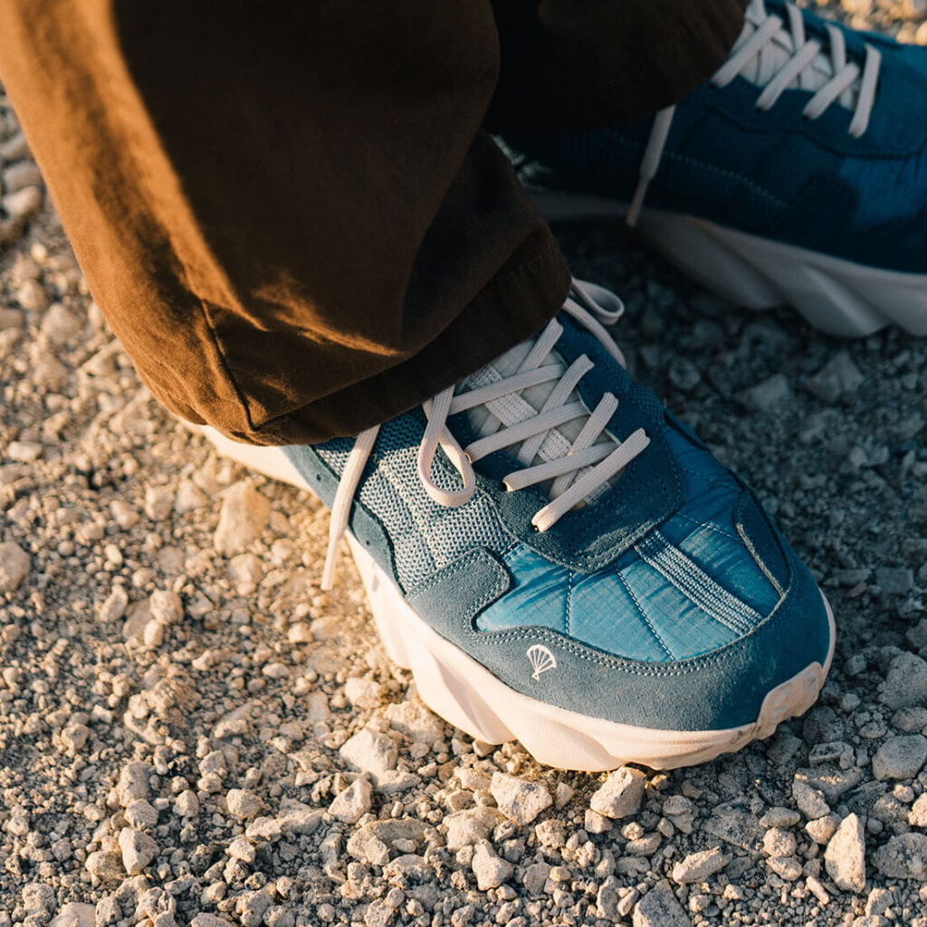 Cowhide-Suede / Used Paraglider Fabric (생활방수) / Recycled Polyester Shoelace / Injection Phylon Midsole / Rubber Outsole / EVA Insole