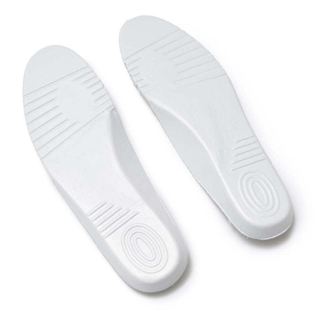 EVA FOAM 으로 제작된 일반적인 쿠션감의 인솔입니다. 발에 닿는 부분은 통기성이 있는 메쉬로 적용되어 있습니다.