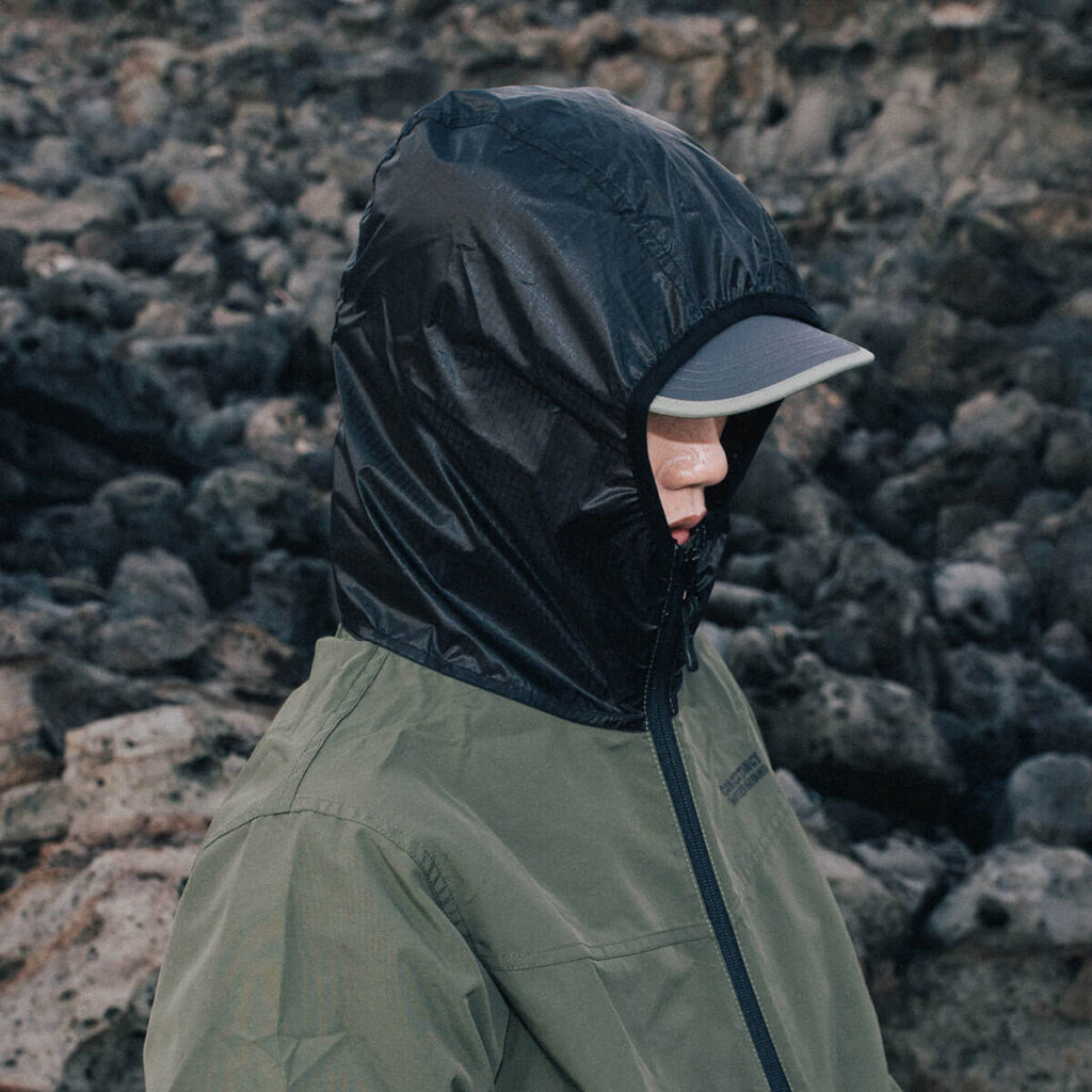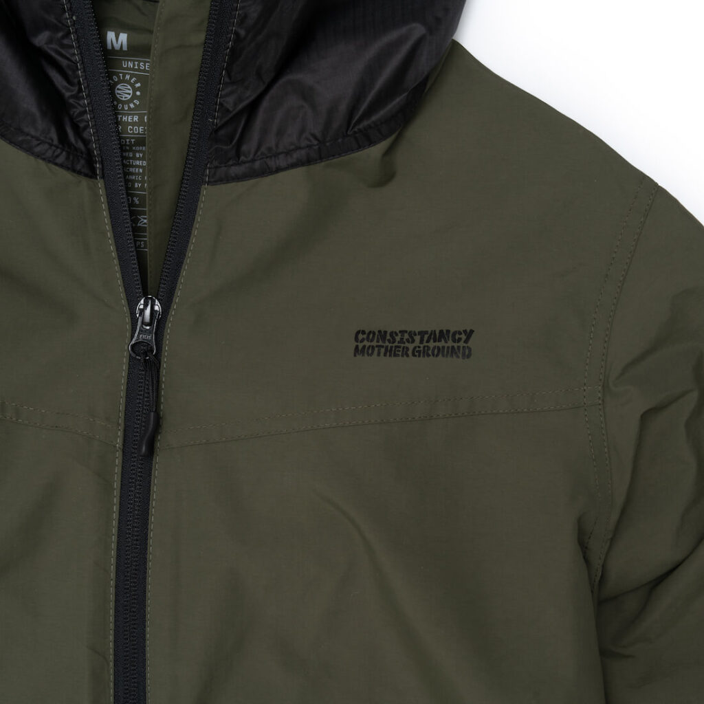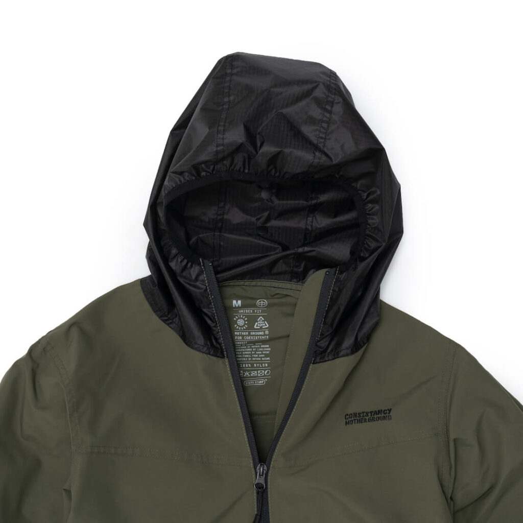 도톰한 윈드브레이커입니다. 모자부분에는 패러글라이더 리사이클 원단을 활용하였습니다.