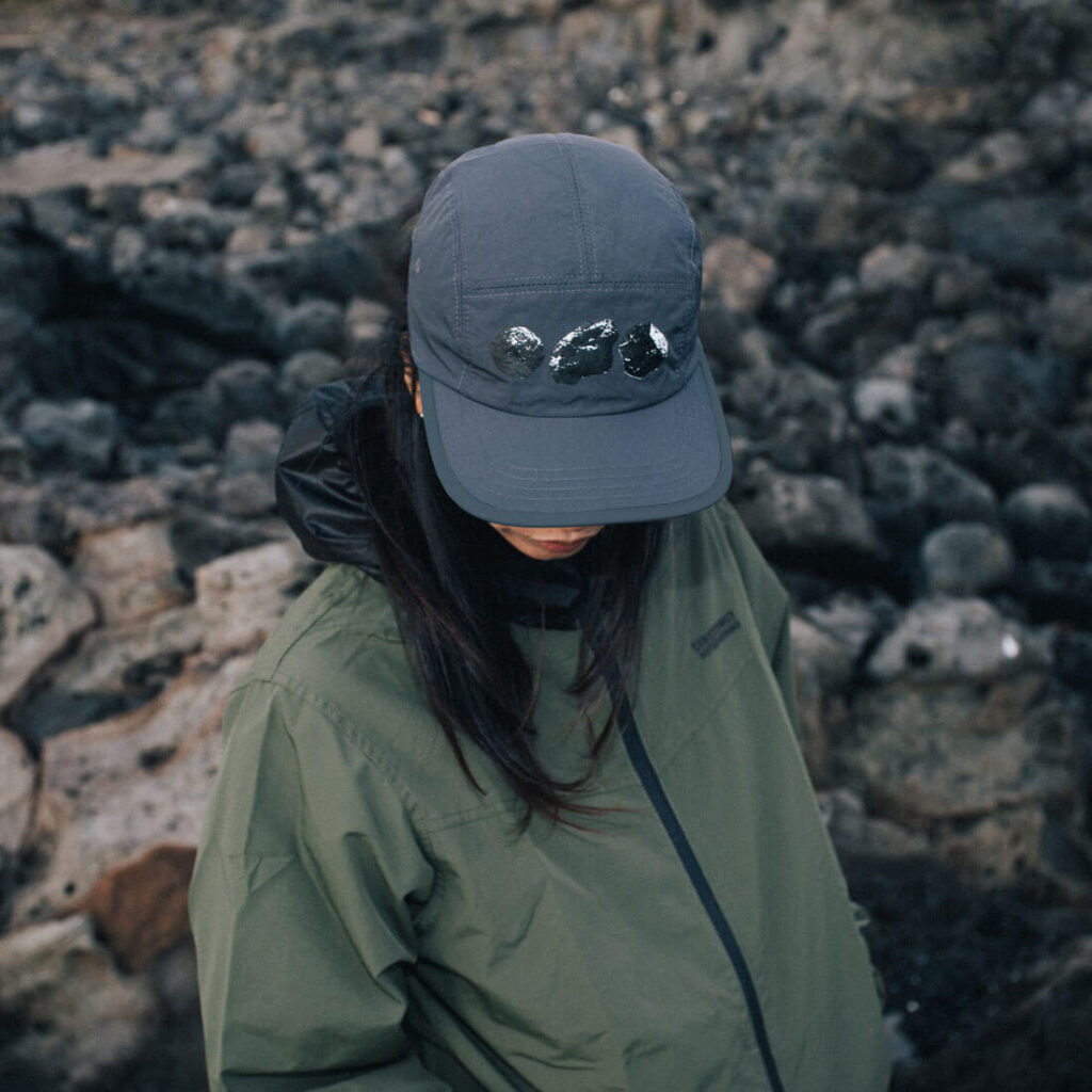 하드챙과 리사이클 나일론으로 제작된 캠프캡입니다. 가볍고 통기성이 좋습니다. 기본적인 생활방수가 되는 원단입니다.